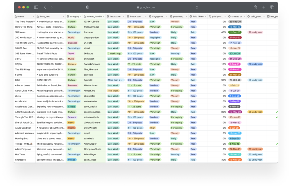 100 active newsletters